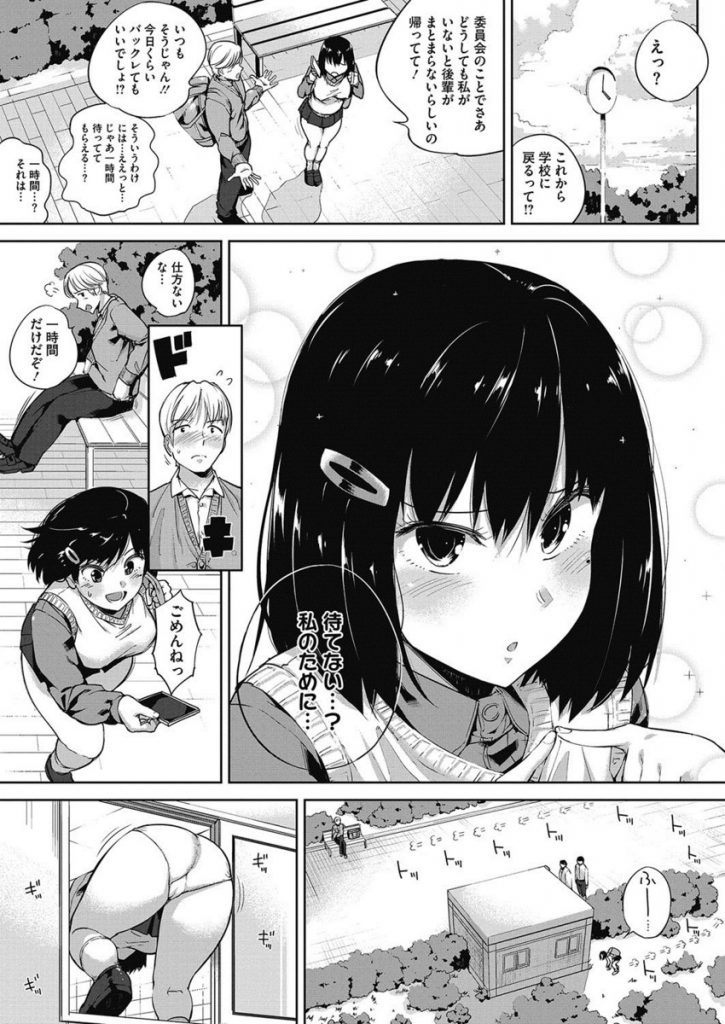 - >【エロ漫画】清楚系JKは行列が出来る売春ビッチガールで彼氏を待たせ童貞君にパイパン陰部のレクチャーし複数全穴ご奉仕!