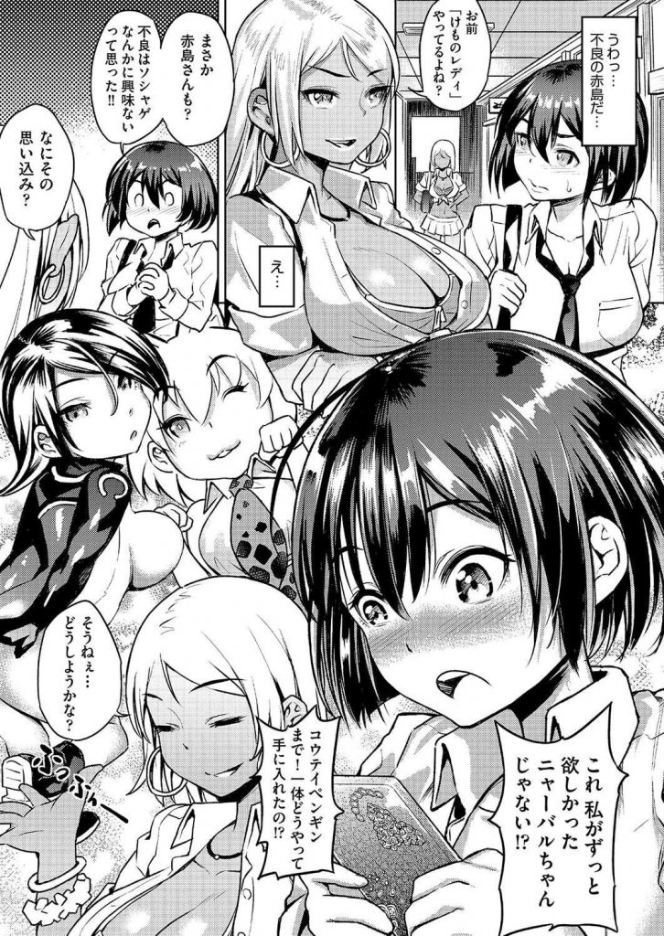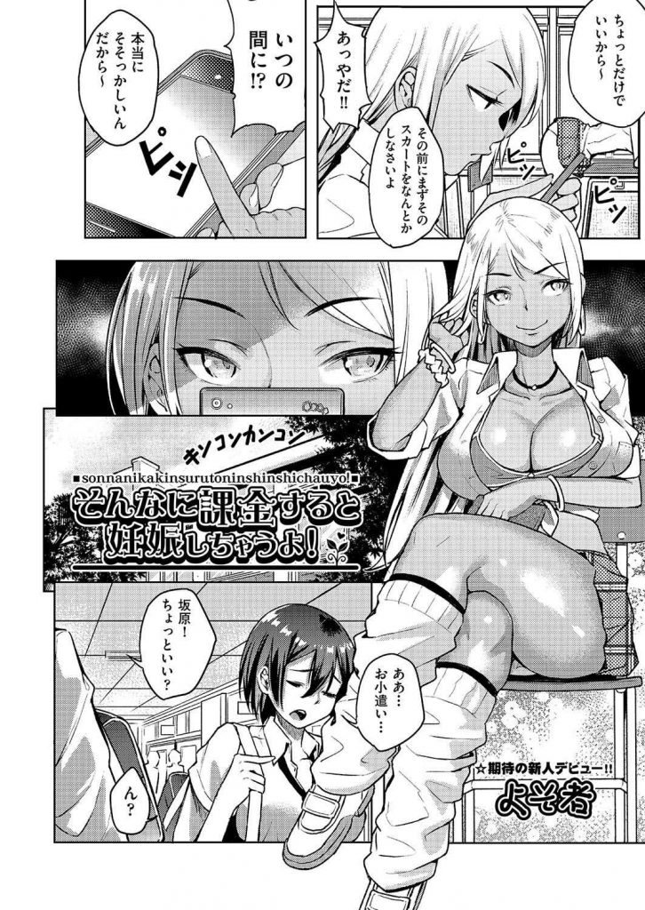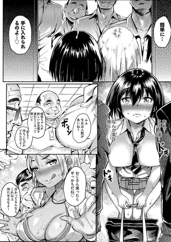 - >【エロ漫画】ソシャゲ廃人の黒髪JKが不良の黒ギャルに援交乱交パーティに連れて行かれ金欲しさにオジサン達の子種を懇願!