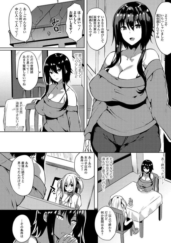 【エロ漫画】男子厳禁の激安アパートに住む為に女装子がふたなり大家に家賃免除の条件でオナホ代わりに逆アナル喪失!