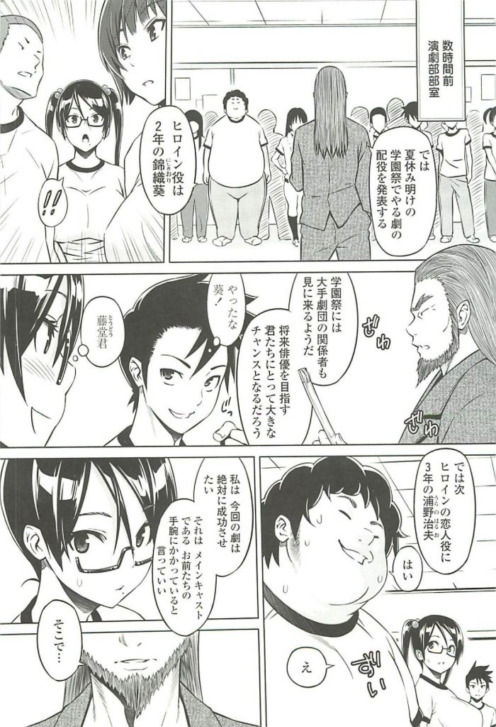 | 【1話】【エロ漫画】演劇部の眼鏡JKがヒロインに抜擢され恋人役のキモデブ先輩と夏休みの間恋人を演じプリクラ機内でAFする!(Now) |