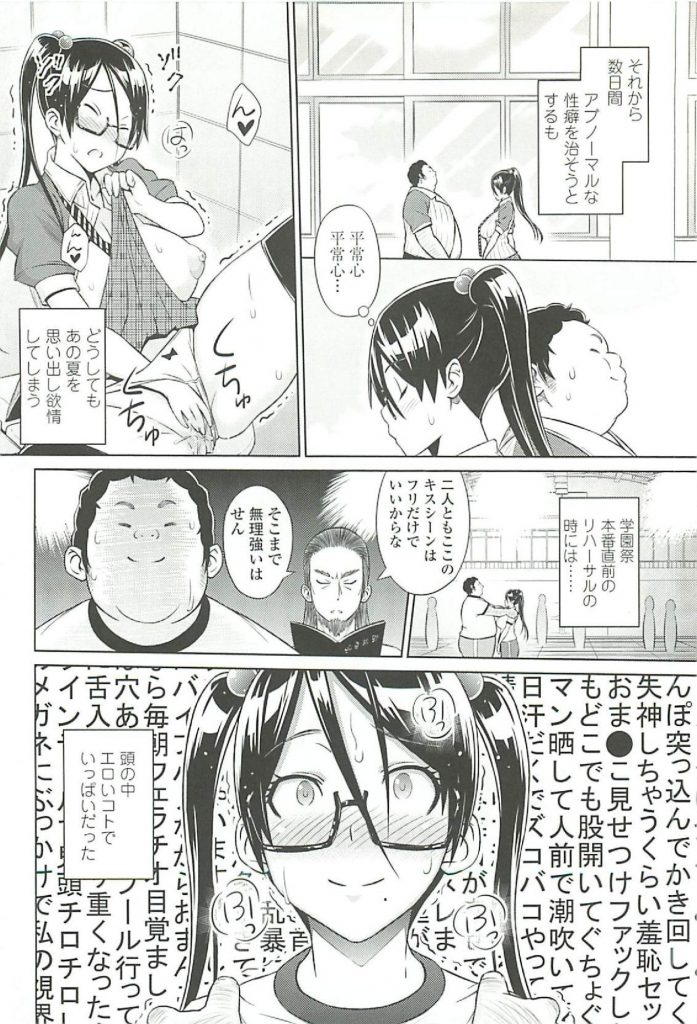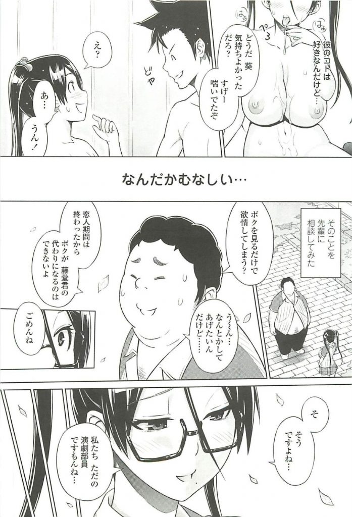 | 【1話】【エロ漫画】演劇部の眼鏡JKがヒロインに抜擢され恋人役のキモデブ先輩と夏休みの間恋人を演じプリクラ機内でAFする! |