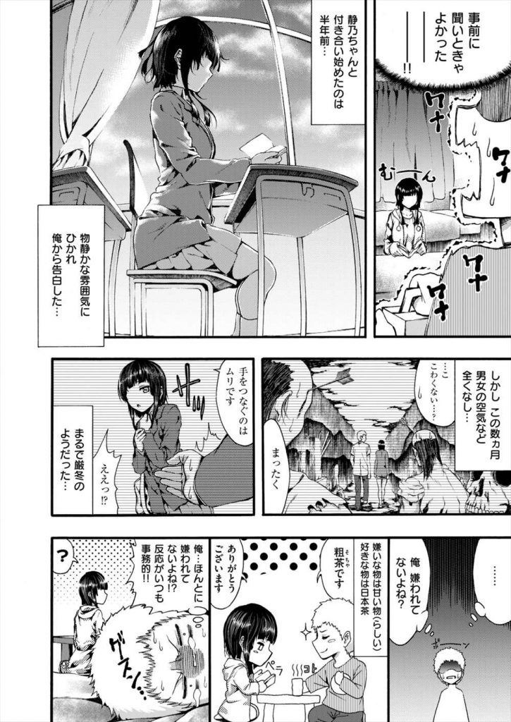 - >【エロ漫画】物静かな雰囲気の彼女と初体験の期待を胸に家デートして好きな気持ちをキスで示されマンズリで膣口を解す!