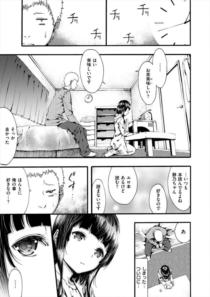 【エロ漫画】物静かな雰囲気の彼女と初体験の期待を胸に家デートして好きな気持ちをキスで示されマンズリで膣口を解す!