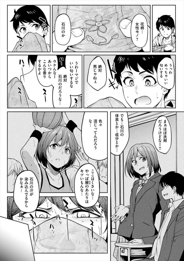 【エロ漫画】女友達の服の匂いでシコってたら本人にバレて状況を鮮明に聞かれ妄想してた通りに実践していき中出しエッチ!