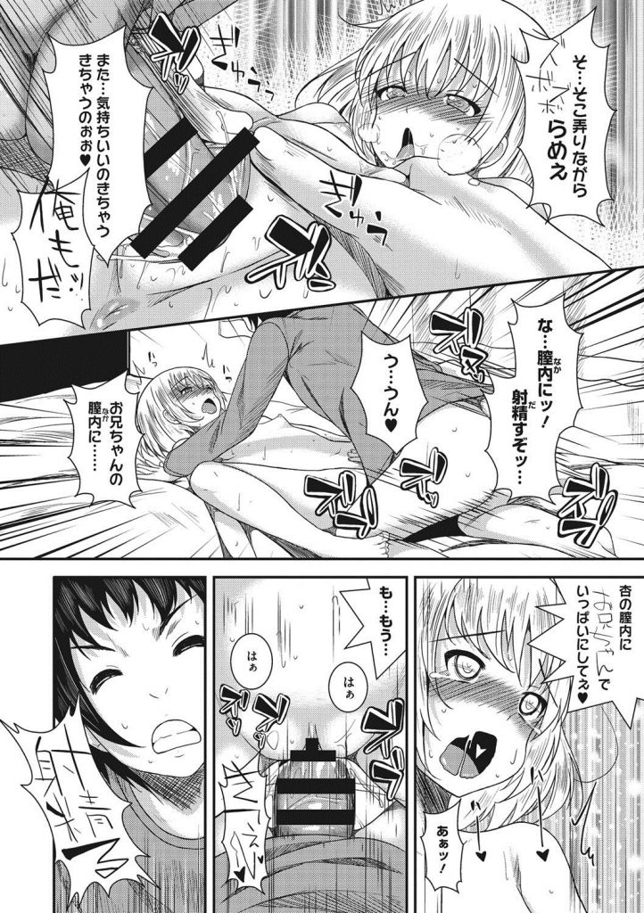 ミニスカでパンチラを見せつける可愛い妹が大好きなシスコンの兄が日に日に欲情が募りパジャマの隙間から覗く乳首に卒倒して淫夢を見ると隣で服が開けて半裸で寝る妹に理性を抑えきれず睡眠愛撫でチッパイを舐めまわして亀頭を擦りつけてパイ射し股間に貪りついたところで理性を取り戻すが起きていた妹に誘われ兄妹姦で悶え狂う妹に膣内射精!