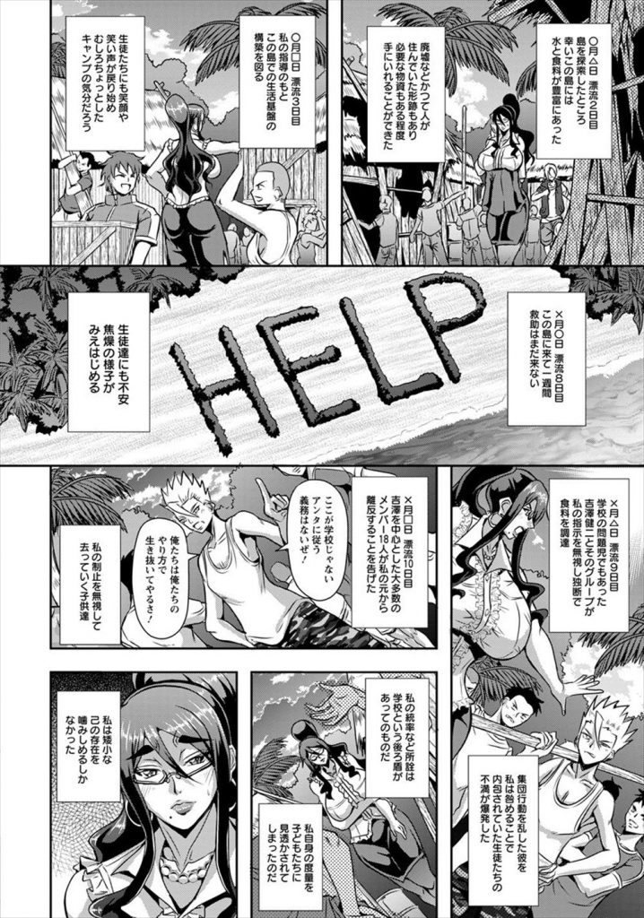 - >【アダルト漫画】飛行機事故で無人島にたどり着いた爆乳女教師が生徒達に輪姦されザーメン肉便器になる!