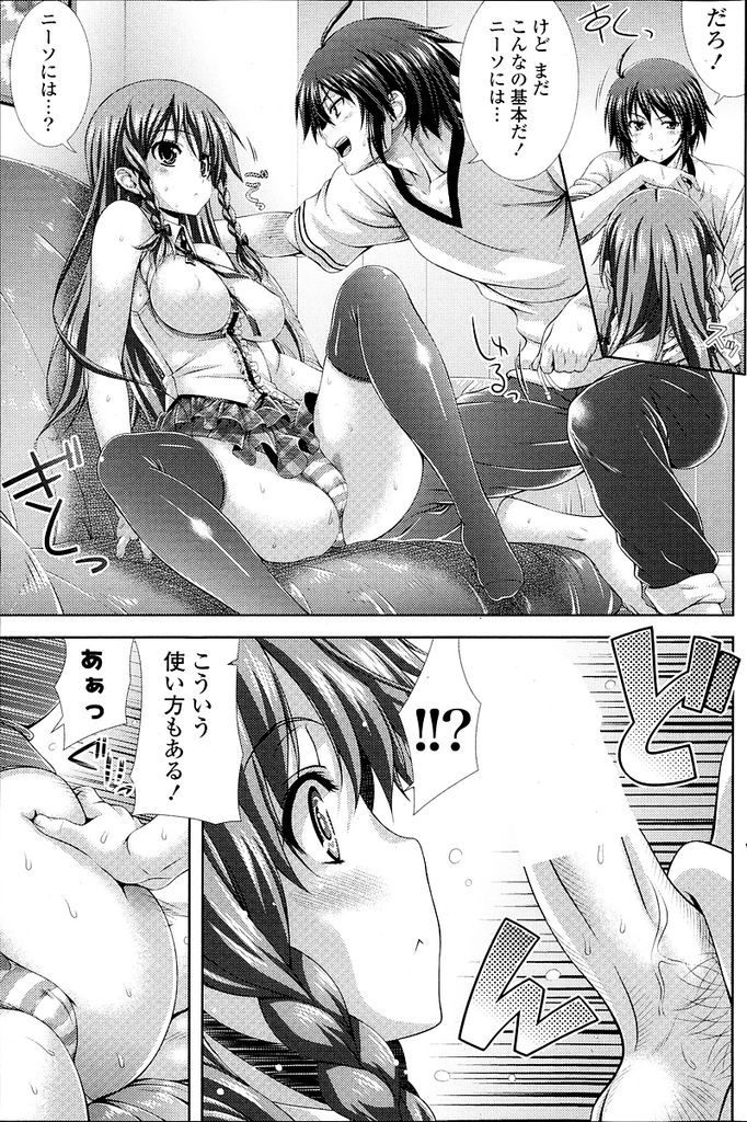 - >【エロ漫画】美脚彼女がニーソ風ストッキングをマニアの彼氏に見せるがマニアックなニーソコキでニーソ愛を推し激ハメ!