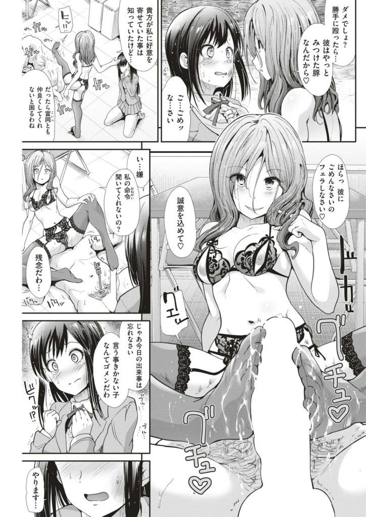 - >【エロ漫画】同性の生徒会長に想いを寄せるJKが男子を逆調教してるドSな会長の本性を見てしまい参加させられドMに覚醒!