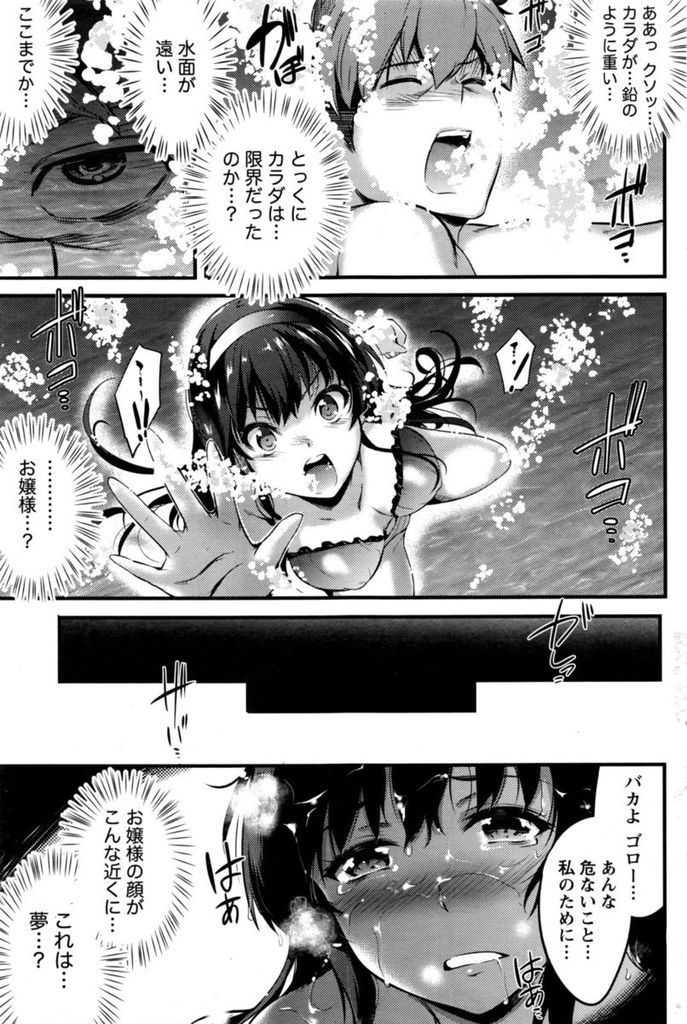 【エロ漫画】お嬢様と従僕の男が大海原で漂流して救命イカダに二人ぼっちになり溺れた彼の身体を温める為に裸で寄り添う!