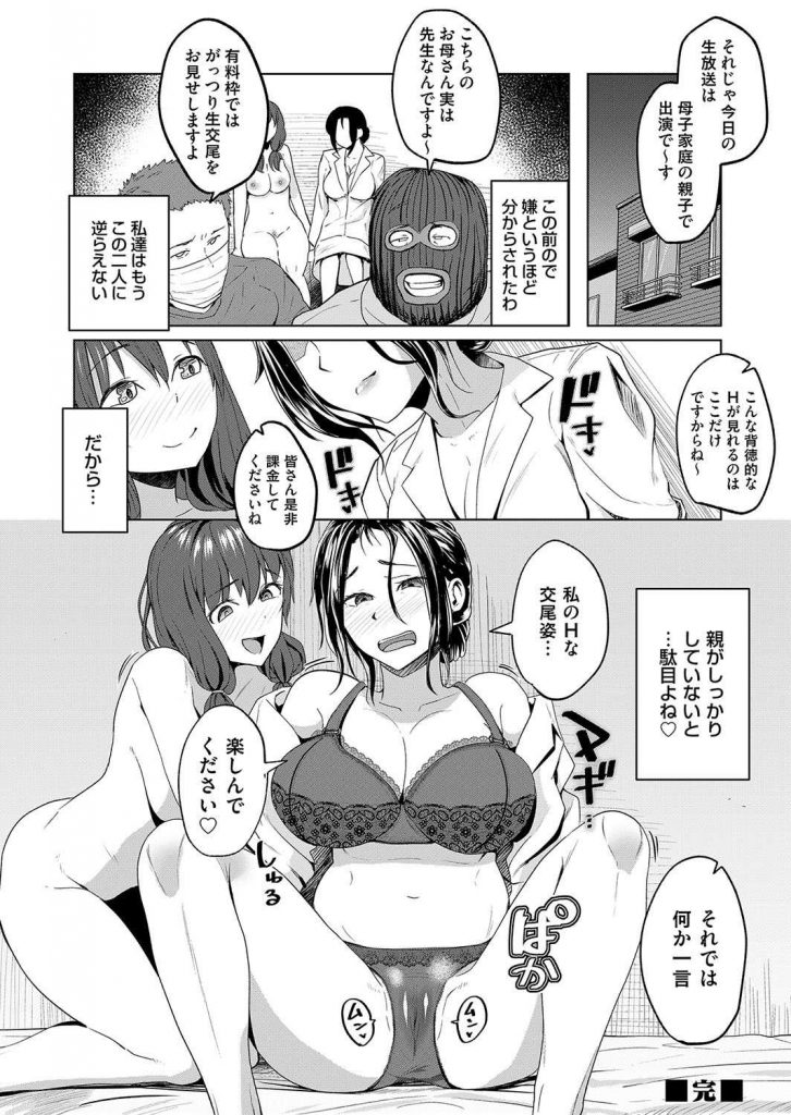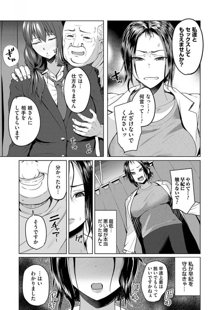 - >【エロ漫画】美熟女保健教諭がクズの中年教師に娘を人質に取られ大きめ乳首のJカップ爆乳でチンコキし母娘乱交で媚薬アクメ!
