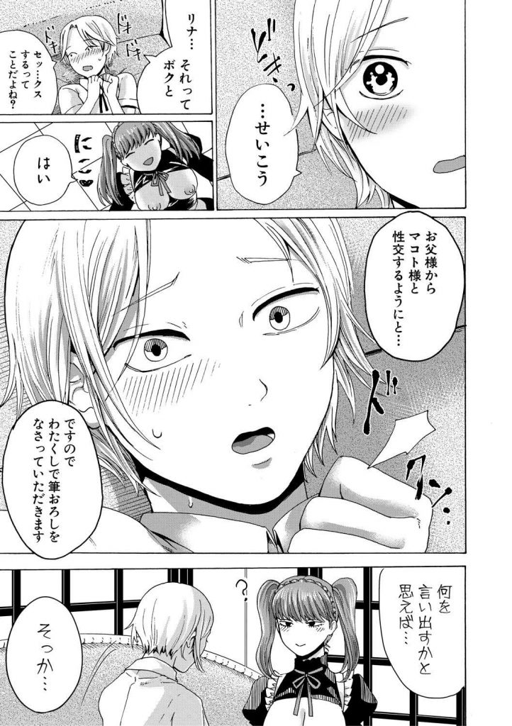 ご主人様である少年に仕えるメイドはご主人様の肛門係としてアナルパールを使い射精のお手伝いをしていた!ある日、旦那様に呼ばれご主人様に女を教えてくれと言われる!ご主人様に性交を迫るが嫌がってしまう!考えたメイドはぺ二バンを着け童貞同士の交換を持ち掛けアナル処女を奪いドライオーガズムを体験させその後に生ハメで筆おろしを行う!