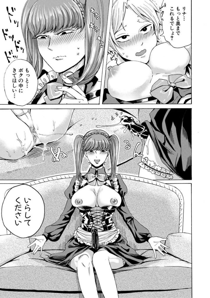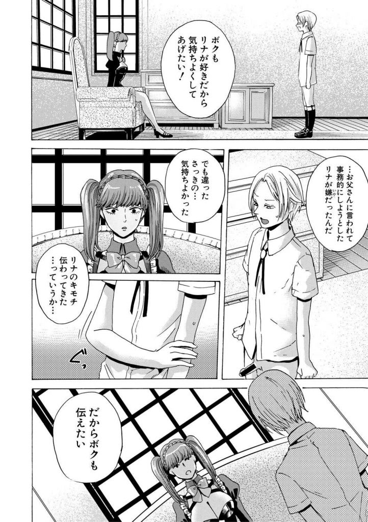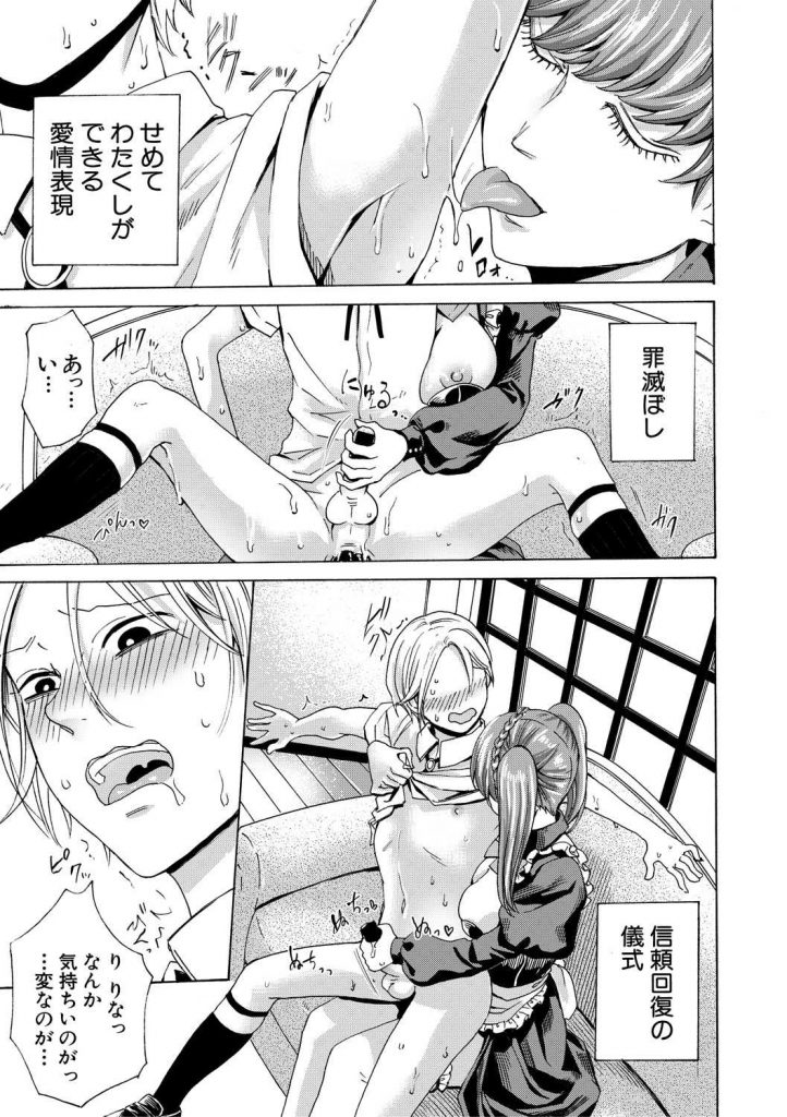 - >【エロ漫画】ご主人様であるドM少年の肛門係りを務めるメイドが女を教える為にぺ二バンを着けアナル処女と童貞を同時に奪う!