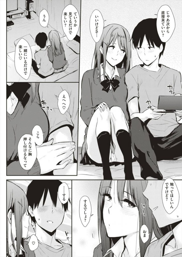 【エロ漫画】彼氏にベタ惚れのJK彼女が喫茶店で待ち合わせしてゲームをする姿に見とれて家に移動して濃厚恋人セックス!