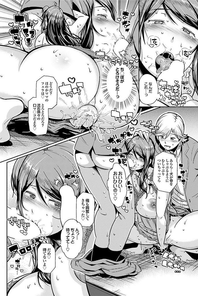 - >【エロ漫画】息子の同級生に調教されてる爆乳お母さんの秘密を共有する為に二輪挿しの3Pセックスで妊娠確定の大量種付け!