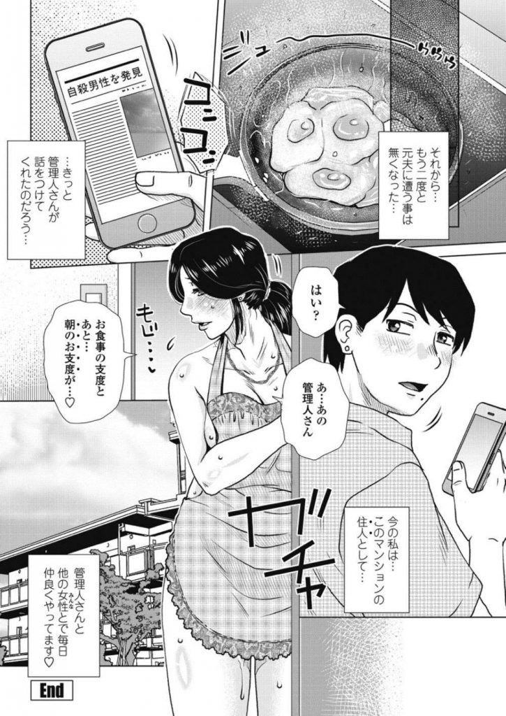 旦那のDVから逃亡してきた熟女人妻が慈善でマンションに匿ってくれる管理人に会いに行く!そこの住人の女性達も協力してくれて一緒にお願いする!管理人さんに体を張って気に入られようと空き部屋に行くと二人の女性にV字開脚でオマンコを広げられ管理人に激しいクンニでクリを噛まれる!そして太くて長い巨根にすがりつき種付けされて住人になる!