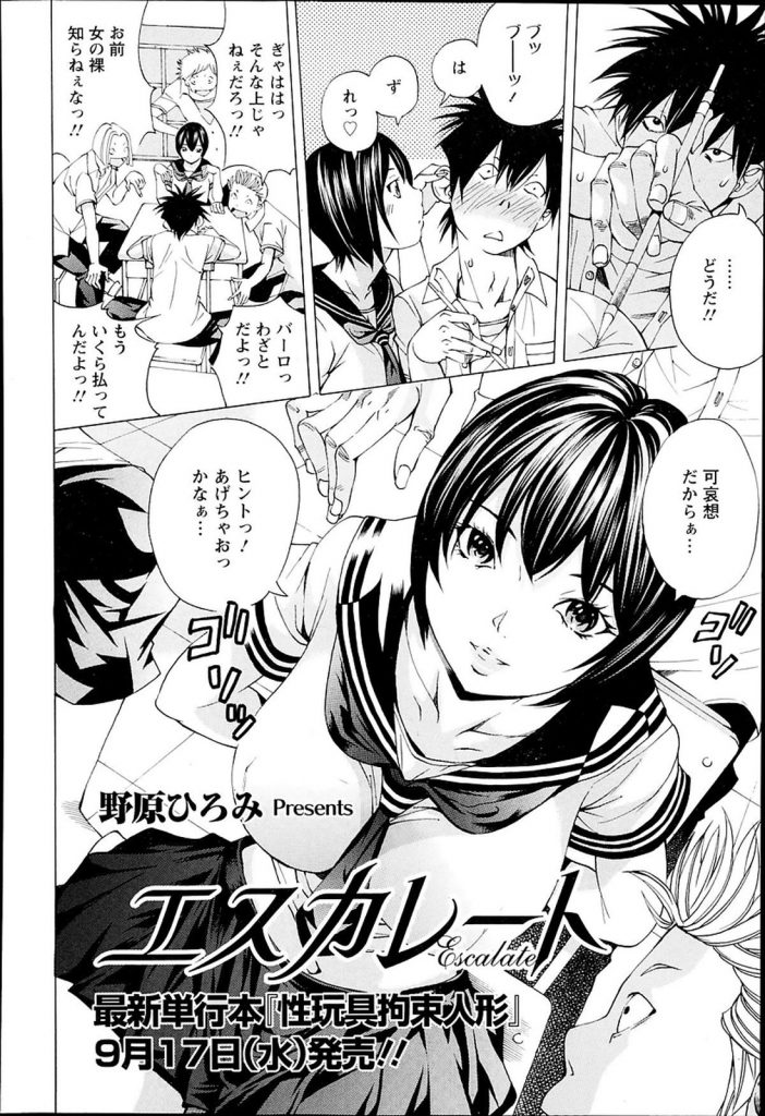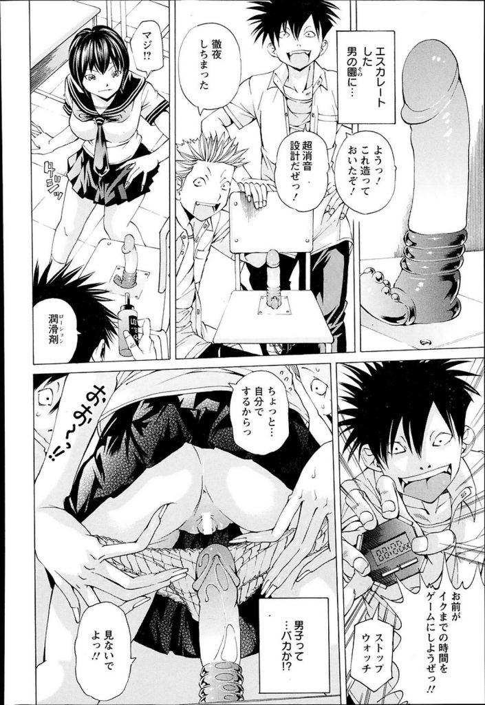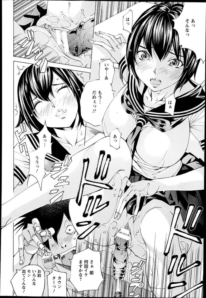 - >【エロ漫画】男子ばかりの機械科で姫扱いのJKにHな悪戯してたらエスカレートしてドリルバイブと輪姦Hでザーメンシャワー!