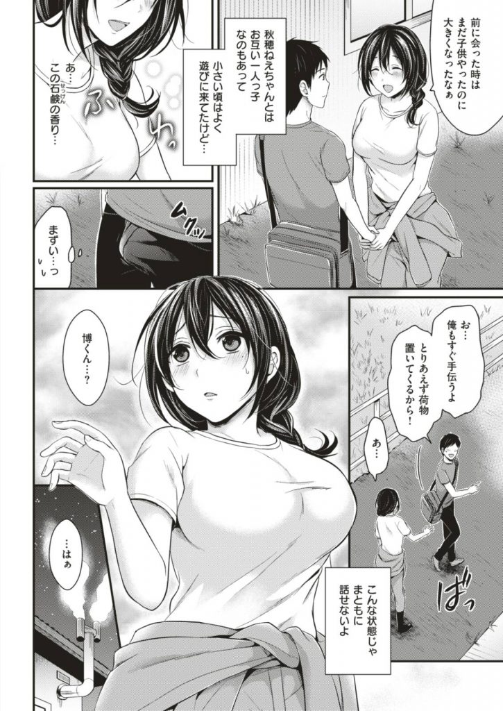 - >【エロ漫画】再会した親戚の巨乳お姉さんと風呂場で昔の様に触り合いっこしたら結婚する事を知り最初で最後の生セックス!