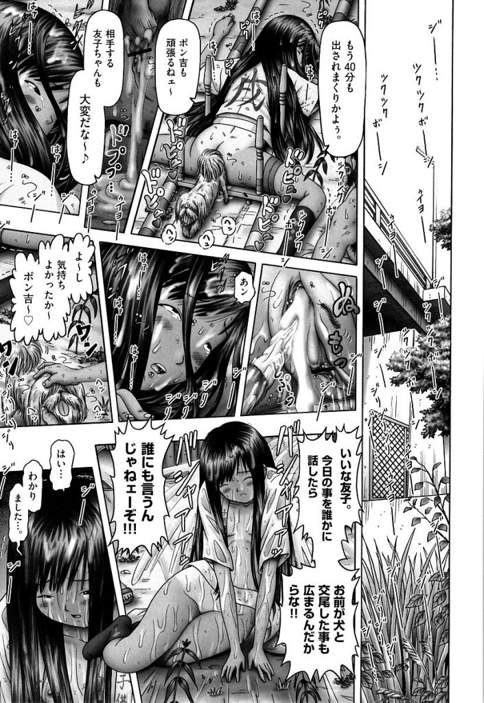 小学生最後の子供祭りに向かう褌と法被姿のツインテJSがバカ犬に大事な縄を盗まれ追いかけてると浮浪者に出会い家に連れていかれ縄を見つけると助けたお礼を肉体で求められ貫通済みのロリマンコを臭すぎる汚い大人チンポで輪姦膣射レイプされると神輿に貼り付けられ青姦の拘束集団レイプで精子塗れにされるとバカ犬にまで獣姦されて中出しされる!