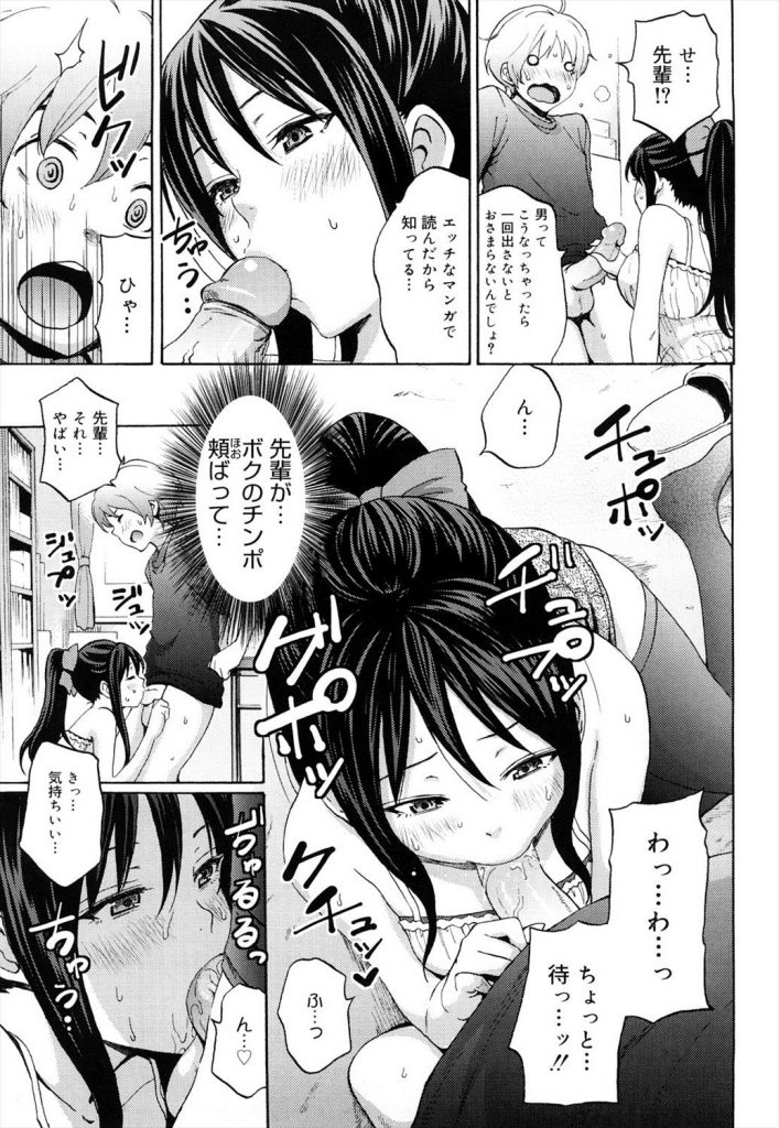 【エロ漫画】通常時の男性器をスケッチする為に後輩のパンツをひん剥く漫研部会長がデカマラに興奮し口いっぱいに頬張る!