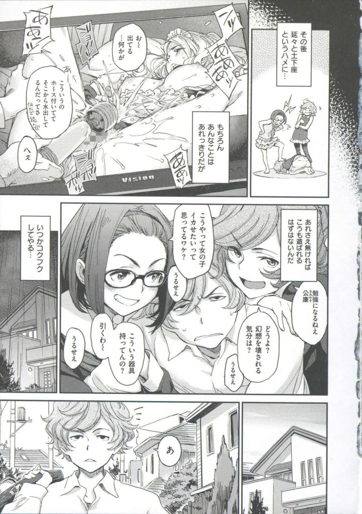 - >【エロ漫画】愚姉の親友のめがねJKに昔から揶揄われてる男子が鞄の中から出てきた電マで報復の処女レイプしたら恋愛発展!