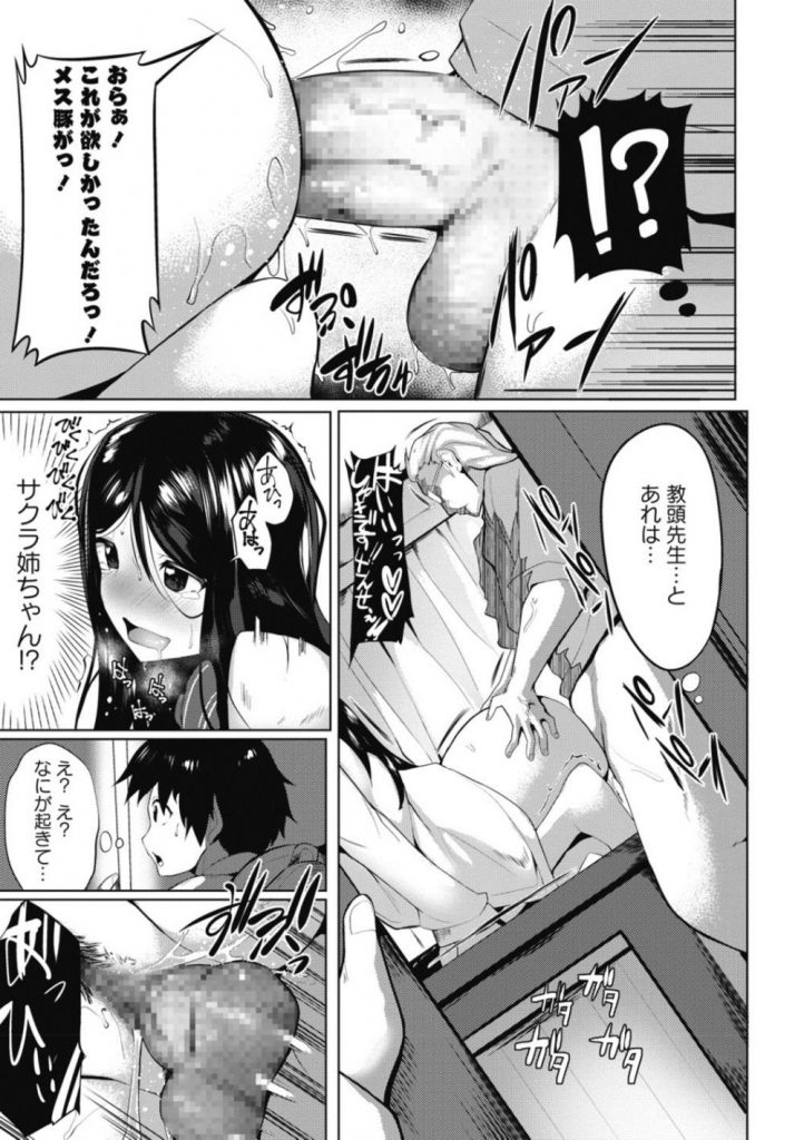 - >【エロ漫画】教頭にセックス調教され牝豚姿を年下童貞の幼馴染に覗かれた副会長の淫乱JKが足コキや逆レイプを行い鉄槌を下す!