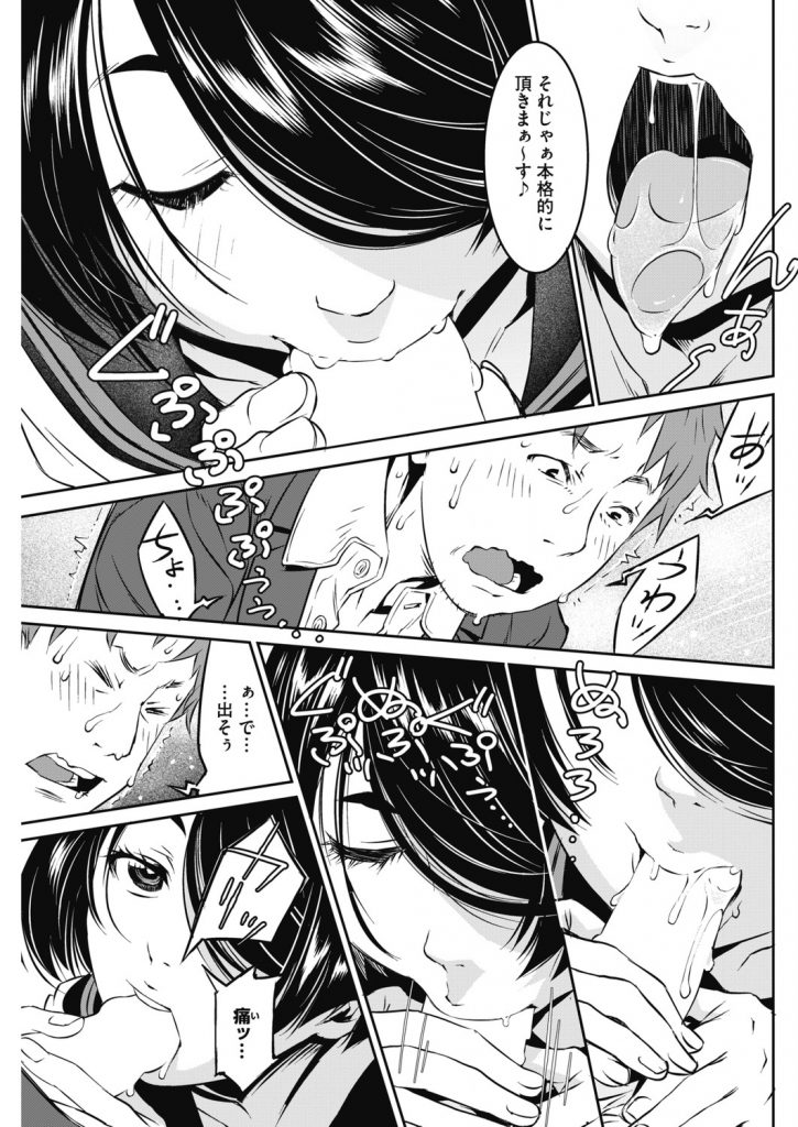 - >【エロ漫画】自殺する前に公衆便所の卑猥な落書きの電話番号に連絡したリーマンがホントに来た痴女JKと筆おろしSEXで昇天!