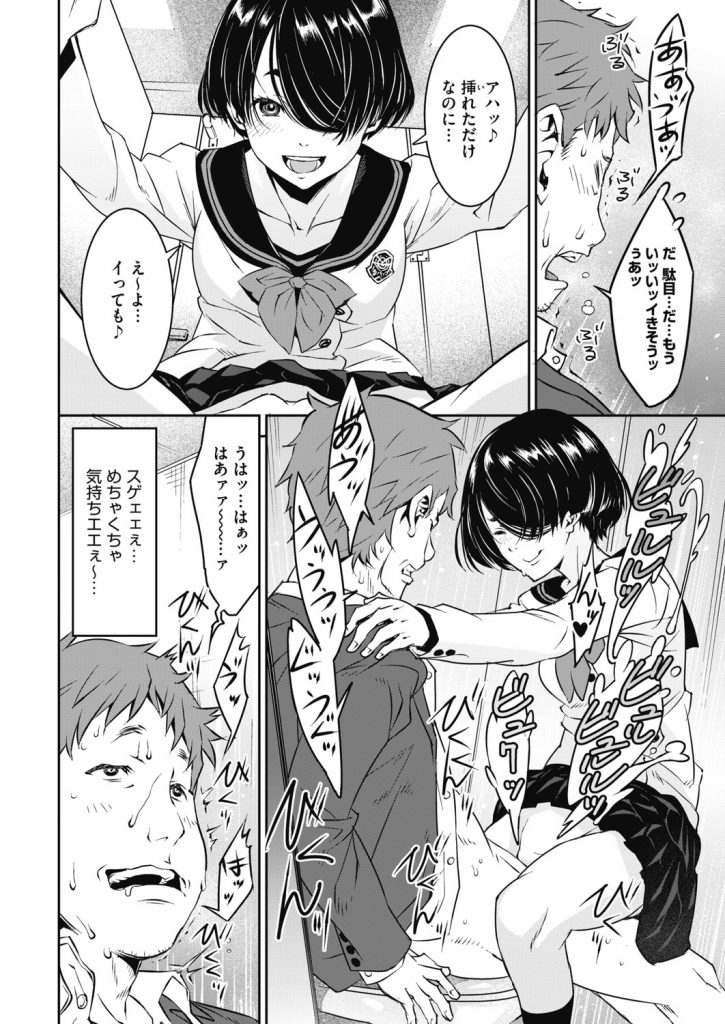 今日死のうと決めたリーマンが公衆便所で即マンOKの落書きを見つけて揶揄おうと思って落書きの電話番号に連絡したら直ぐに黒髪ショートのJKが現れる!いきなりキスされてチンポを舐められて勃起すると痴女な彼女に対面座位で生ハメされる!筆おろしSEXしてもらうと、あまりの名器で即射してしまう!そのままグラインドされ膣内潮吹きして昇天する!