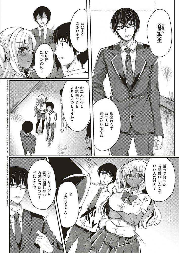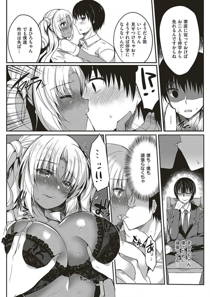 - >【エロ漫画】不純異性交遊が教師にバレて脅される黒ギャル彼女が彼の目の前で愛撫され恥部を濡らし破瓜SEXで寝取られる!