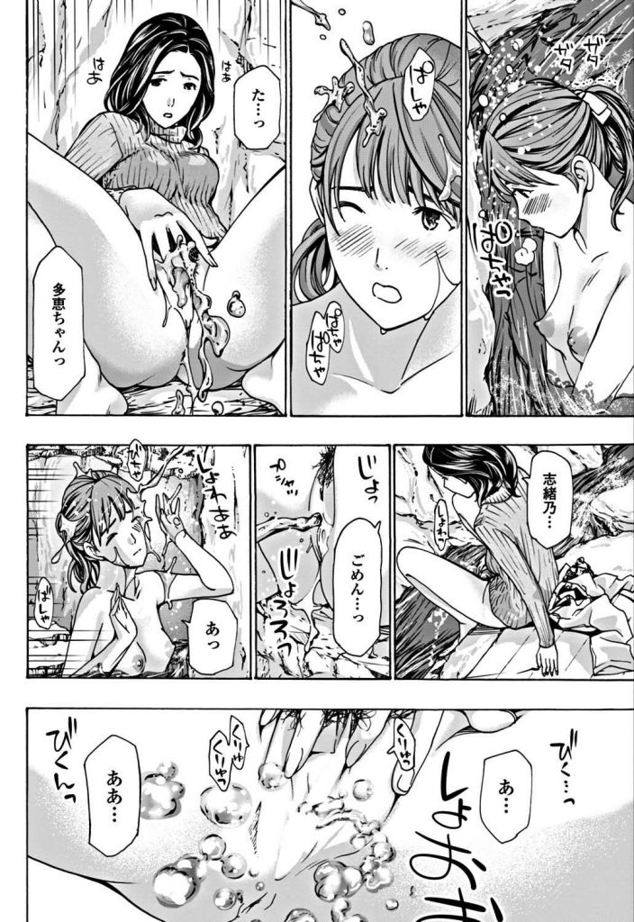 【エロ漫画】山奥の川に行きおしっこをかけ合う歳の離れた同性愛者の百合カップルがマニアックな欲尿レズプレイに溺れる!