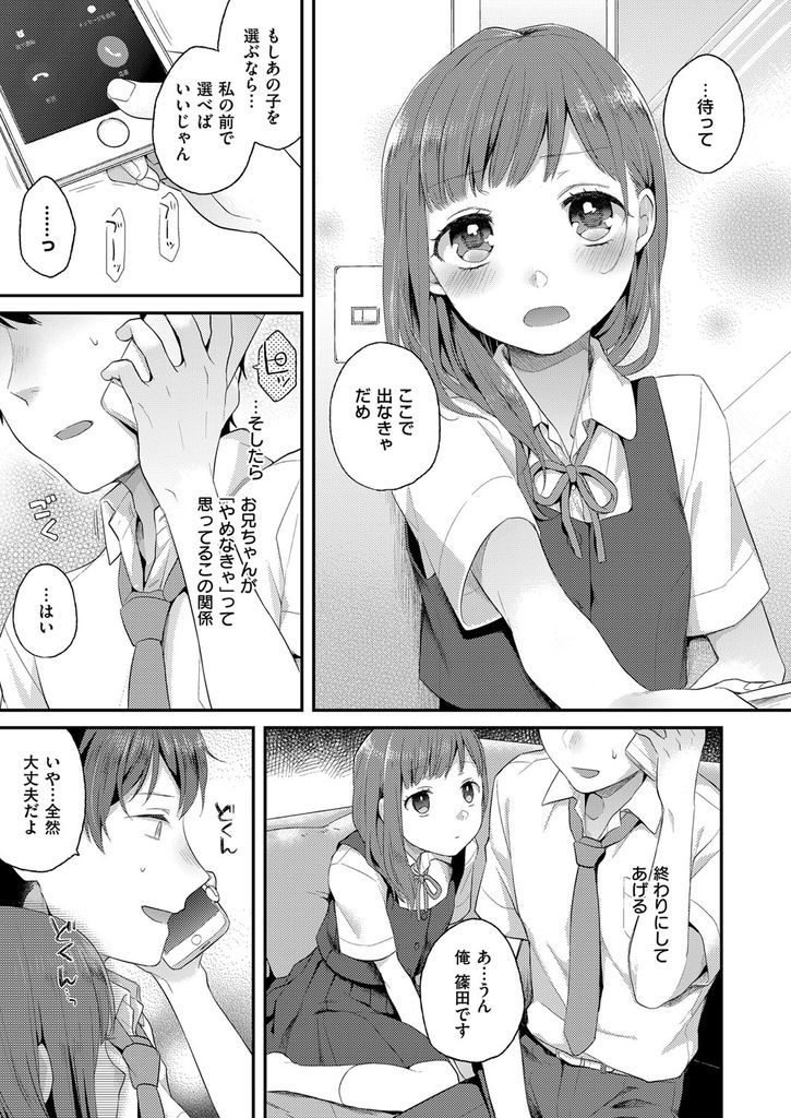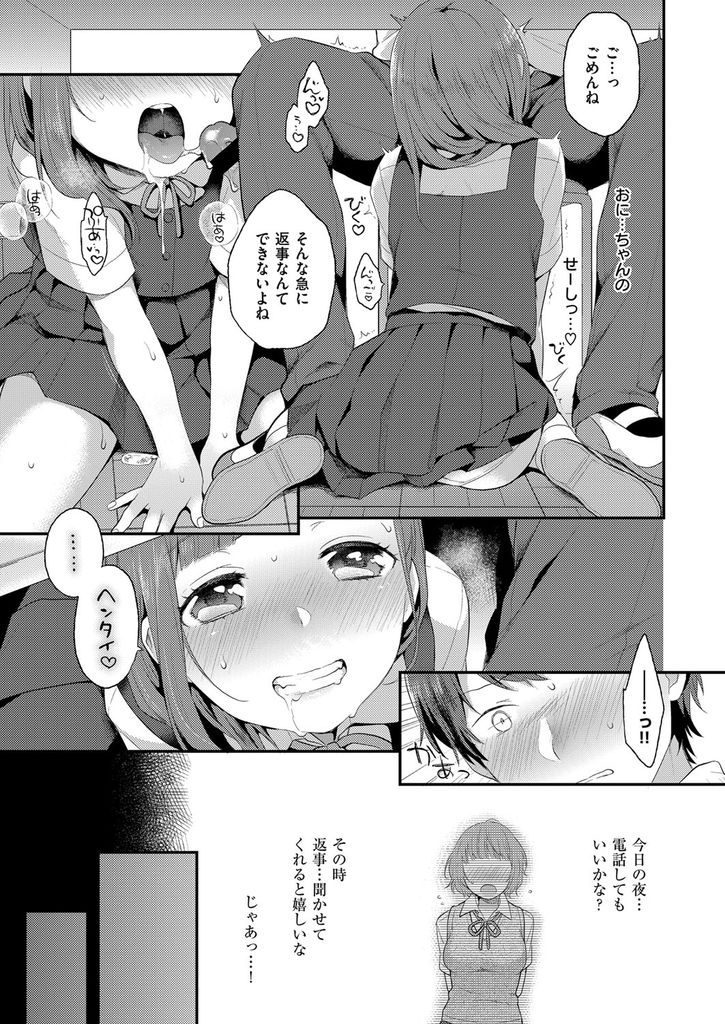 【エロ漫画】性的関係を持つ兄が図書室で告白されてる最中に机の下でフェラする妹が自分を選ばせようと子供マンコで誘惑!