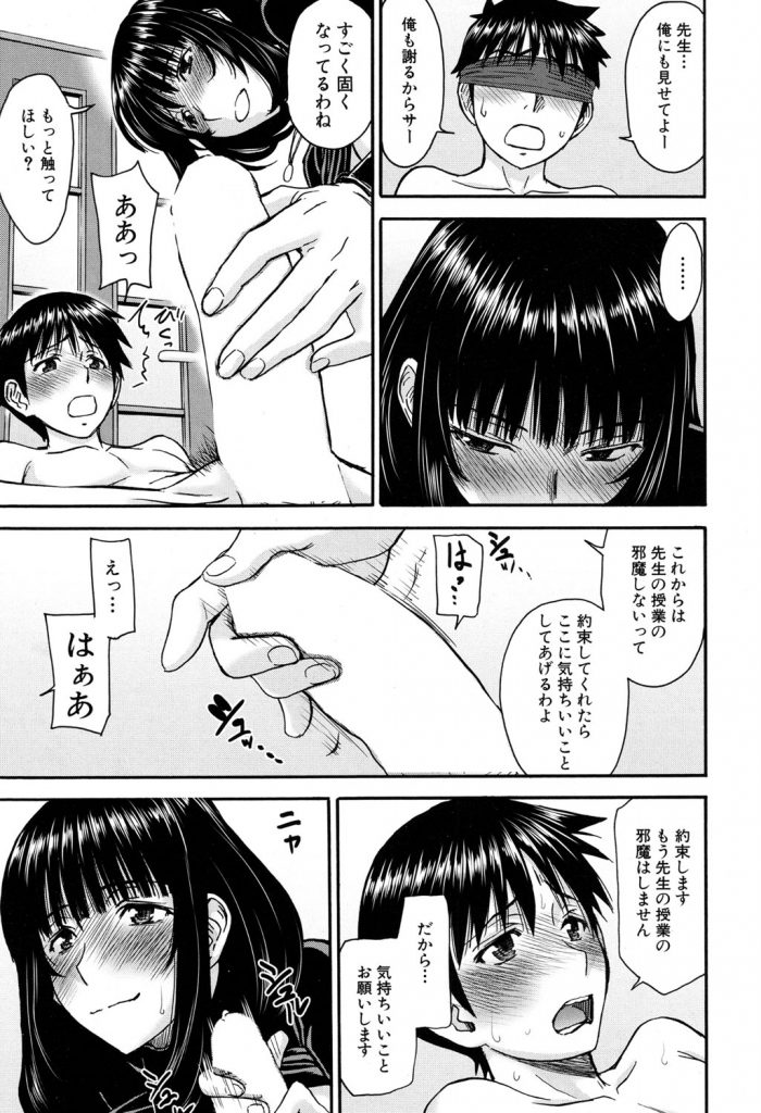 - >【エロ漫画】夜の林道でナイフで脅してきた教え子の悪童を返り討ちにする清楚な先生が反省を促すため性教育で筆下ろし!