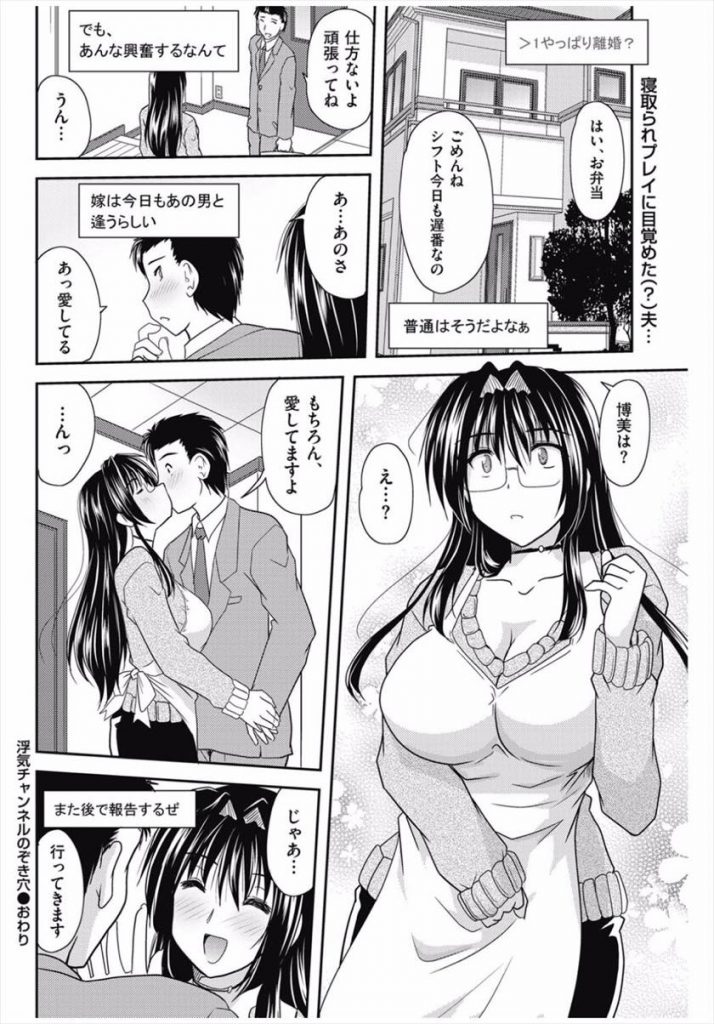 【エロ漫画】WEBカメラで若者と浮気する愛妻の姿を盗撮しネット掲示板に投稿する夫がNTRに目覚めクローゼットで覗き自慰!