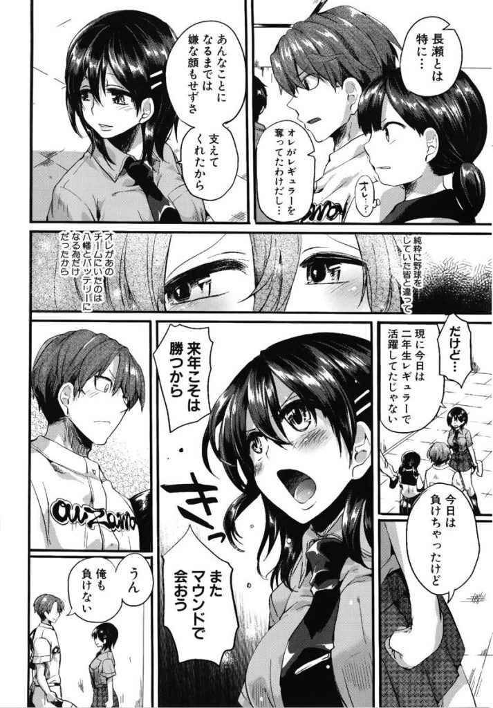 | 【3話】【エロ漫画】男装して野球を続けていた巨乳娘が進学を機にマネージャーになり大好きな幼馴染と両思いのいちゃらぶセックス!(Now) |