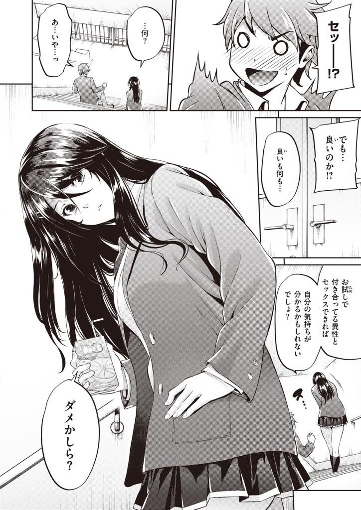 - >【エロ漫画】お試しで付き合ってるカップルが気持ちを確かめようとラブホに行き緊張で勃たない彼に本音を伝えいちゃラブH!