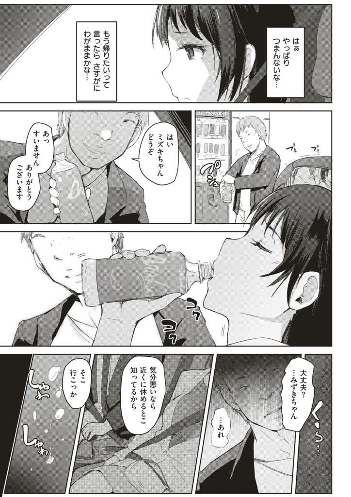 - >【エロ漫画】記念日デートをドタキャンされ気分転換に先輩とドライブするJDが薬物でラブホに連れ込まれ強引にNTRレイプ!