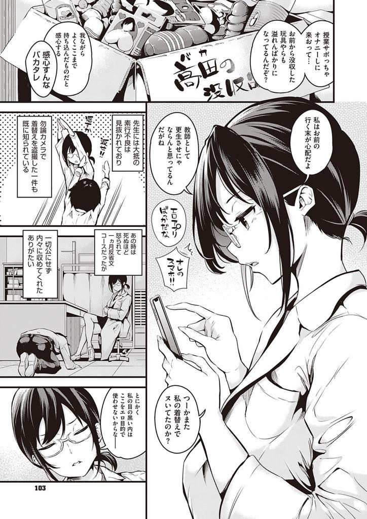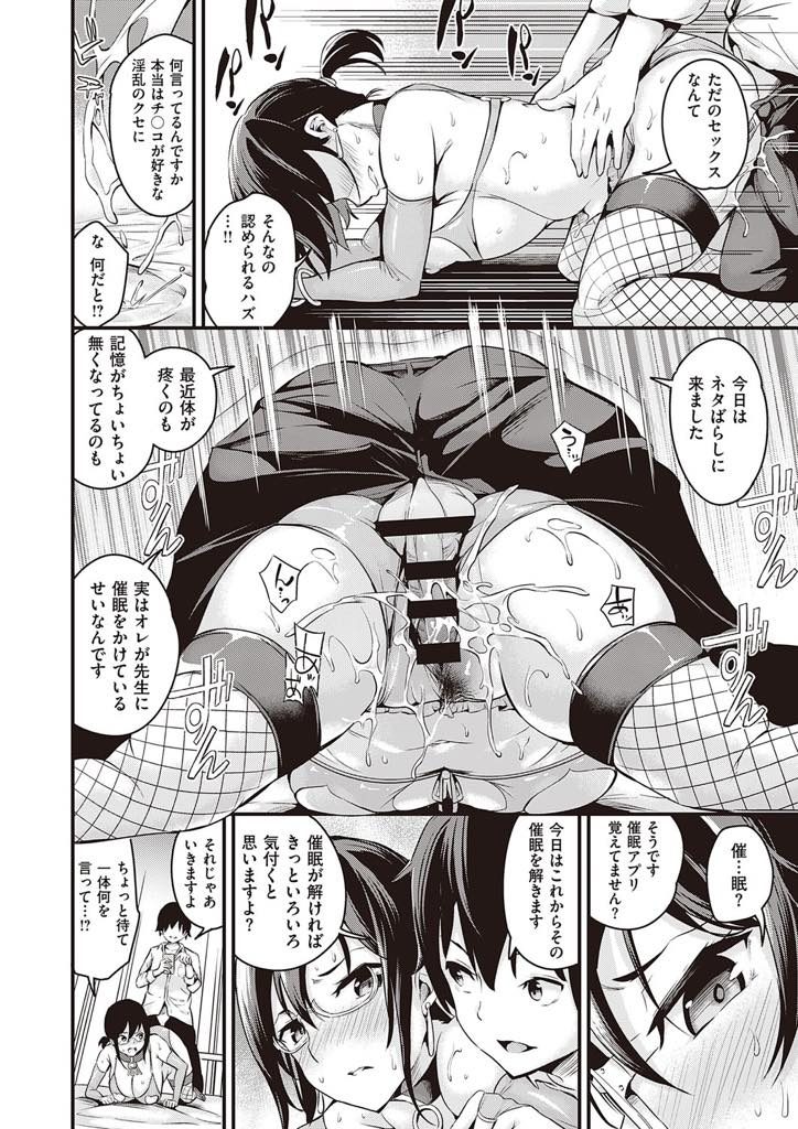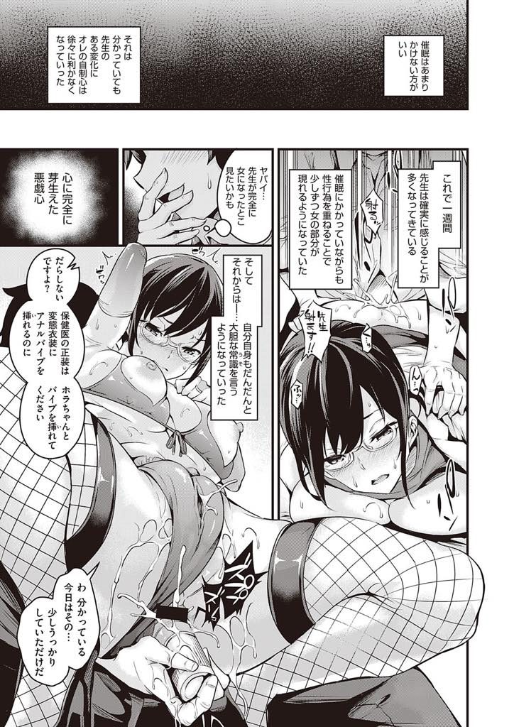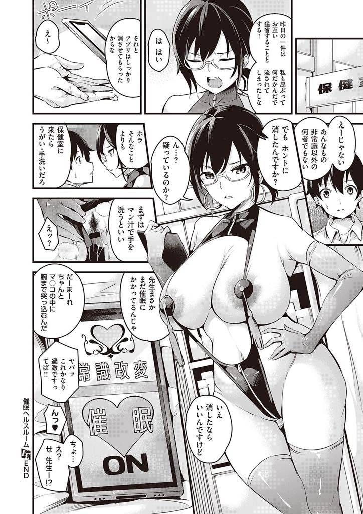 - >【エロ漫画】素行不良な生徒のスマホを見て催眠にかかる眼鏡保健医が改変された常識で職務を全うし雌豚調教されド淫乱に!