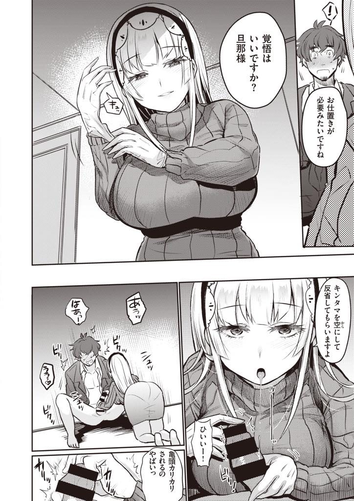 【エロ漫画】風俗通いしてたケツ狂いのド変態夫に包丁を突きつける嫁が説教で勃起した節操ない肉棒をアナルで扱き上げる!