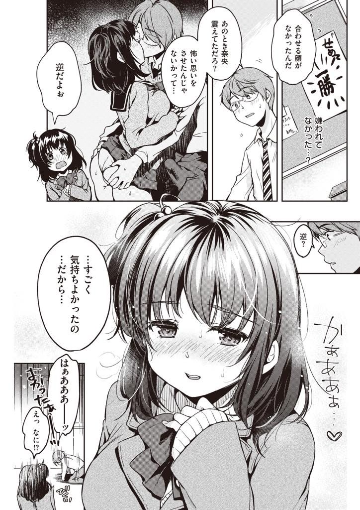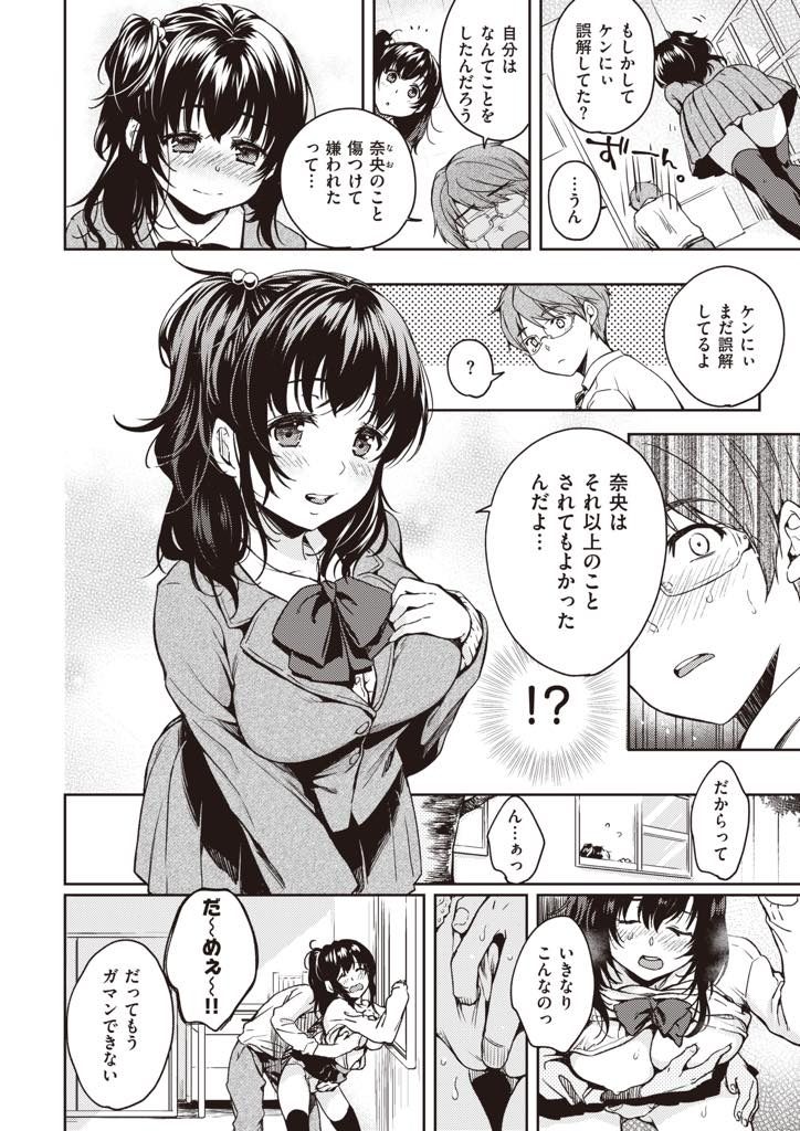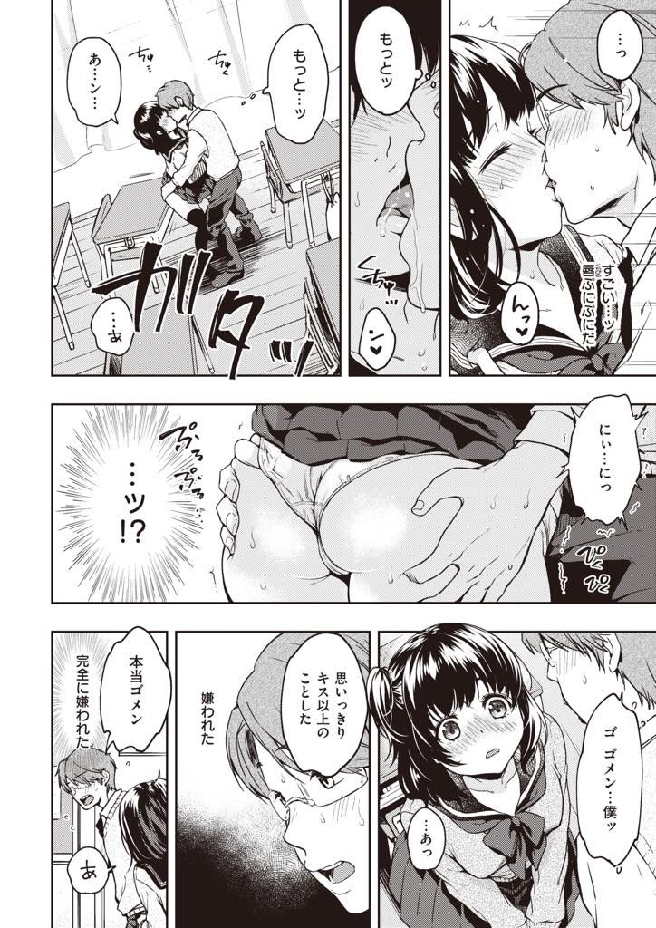 - >【エロ漫画】中学時代にキスした幼馴染と同じ高校に進学しチューを要求するJKが傷付けたと勘違いする彼の誤解を解き純愛H!