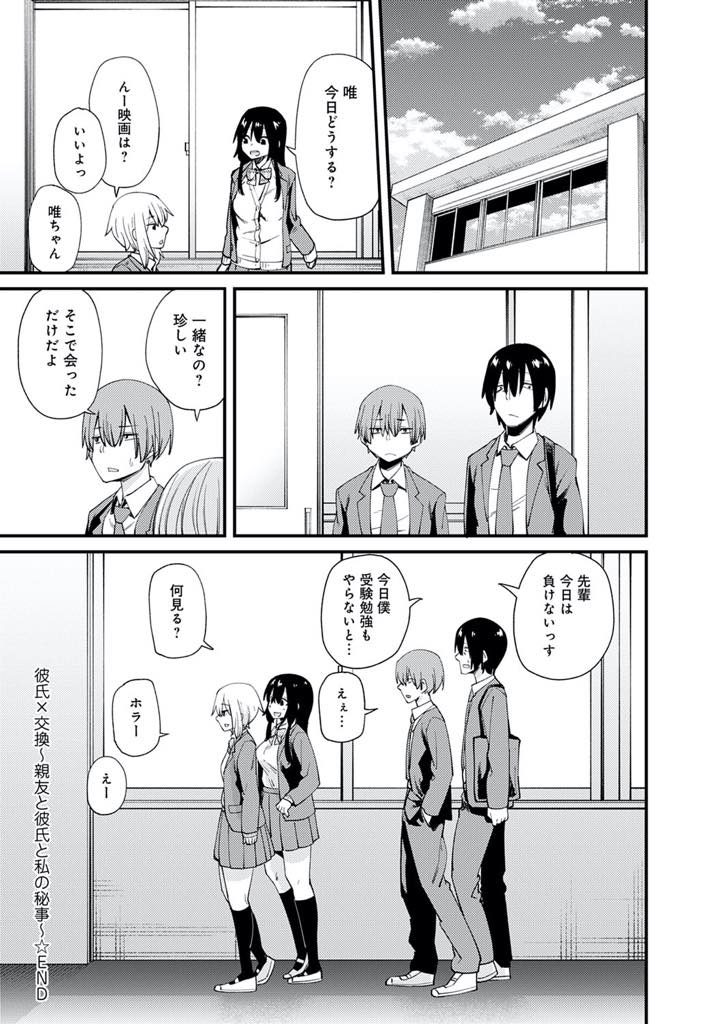 | 【1話】【エロ漫画】仲の良い幼馴染の彼氏を見定めようと交換デートするJKがヤリチンだった浮気男に野外レイプされエビ反り絶頂! |