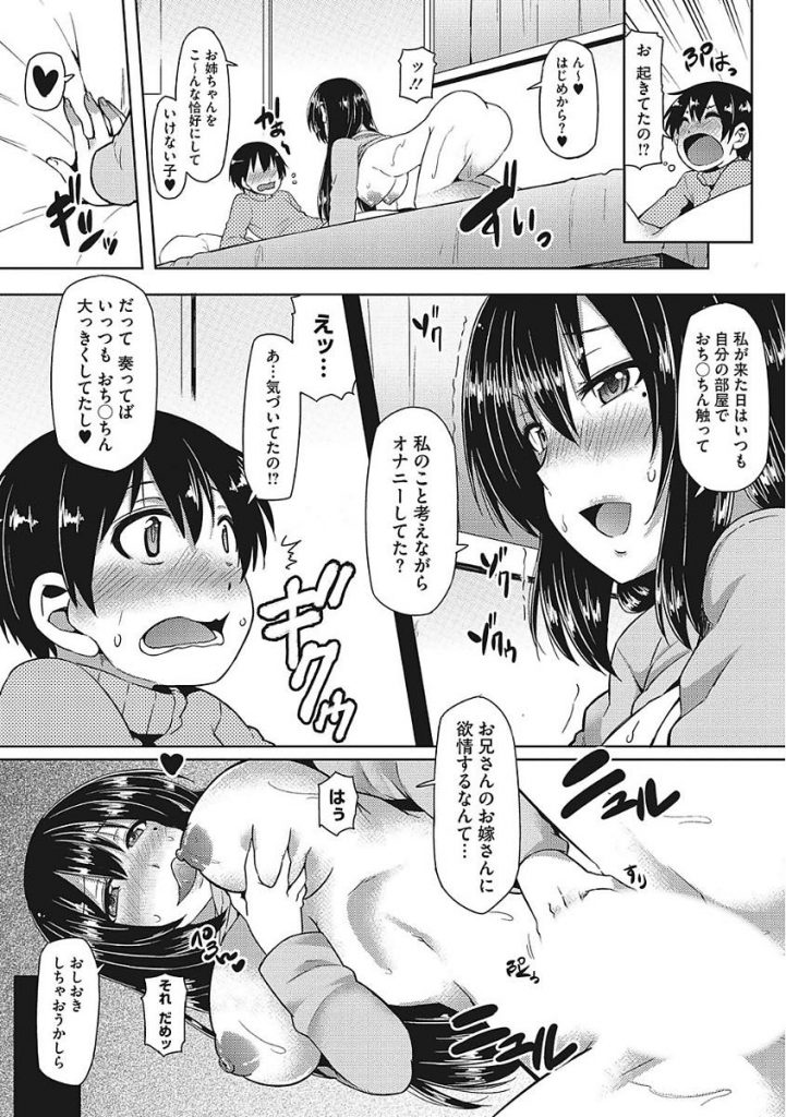 - >【エロ漫画】センズリしてる義弟のベッドに乱入し寝たフリ誘惑する飲んだくれデカ乳兄嫁が欲情させてお仕置きセックス!