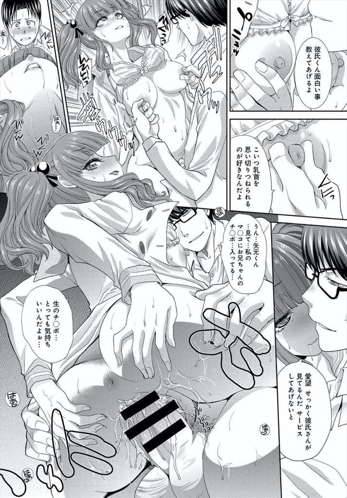 - >【エロ漫画】奥手な彼氏を兄と結託して罠に嵌め近親チンポに悶え狂う姿を見せつける淫乱JKが苦悶する彼を見てイキ果てる!