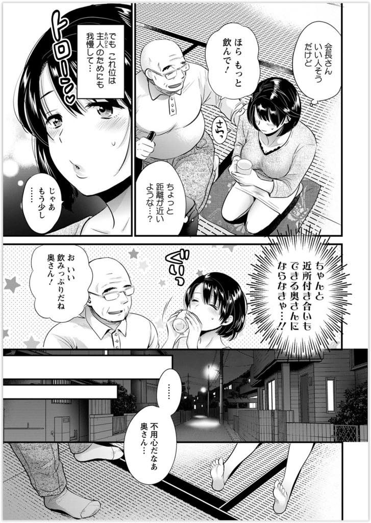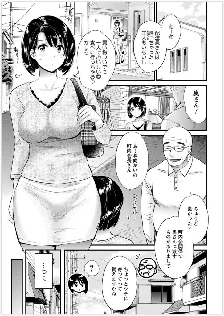 | 【2話】【エロ漫画】配達員にエッチを迫る絶倫人妻が町内会長に酒を飲まされ朦朧とする中旦那と勘違いして浮気中出しセックス!(Now) |