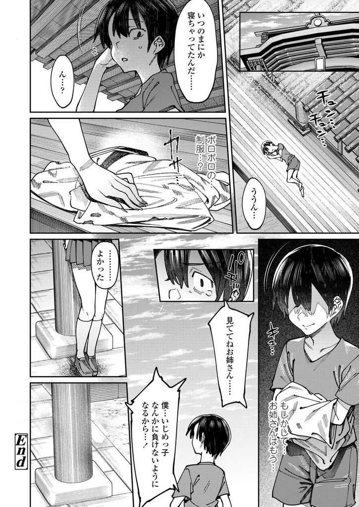 - >【エロ漫画】神社の境内で泣くショタに声をかけフェラ精通させるJKが虐待されてた体で慰め合い悲しい思い出を塗り替える!