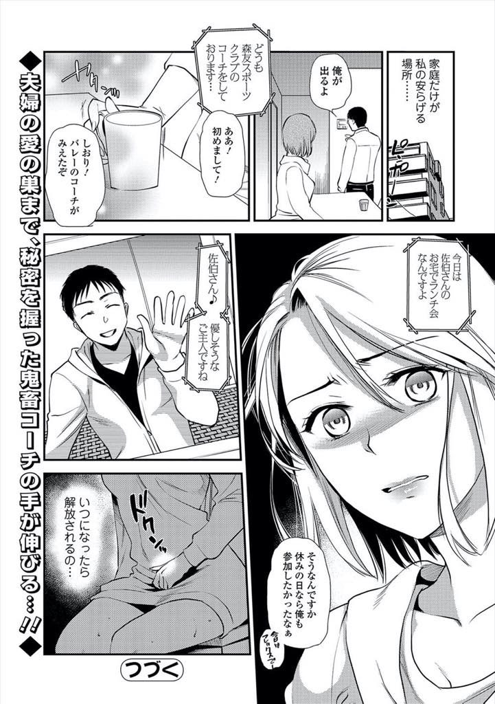 - >【エロ漫画】ママさんバレーのコーチに不倫現場を撮られた人妻が画像削除の為に神聖なコートで他人棒に犯され性奴隷堕ち!