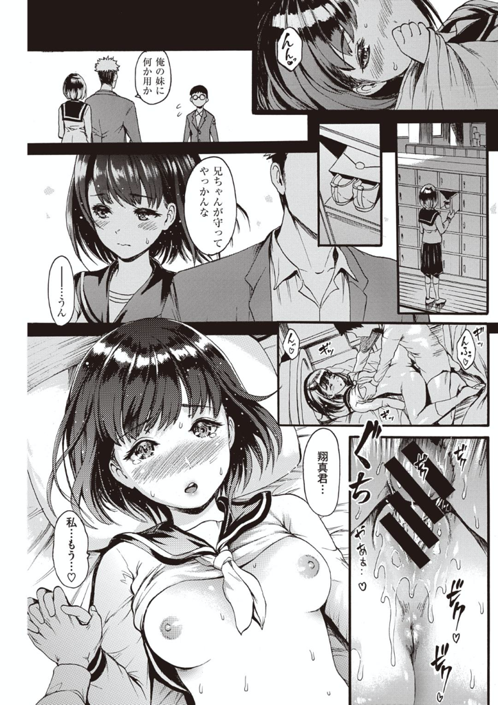 【エロ漫画】兄が男達を追い払ってしまうので性的好奇心が高まってしまった巨乳JKの妹は兄の隙を突いて兄の友達とHな事をして兄が外出中に自分の部屋でいちゃラブセックス
