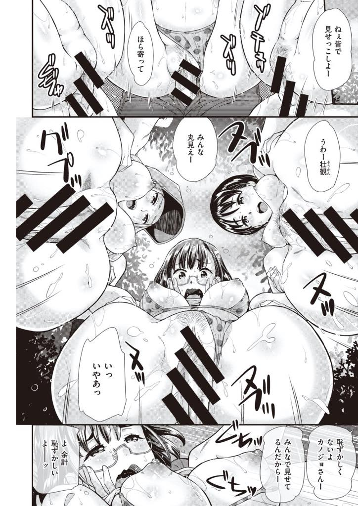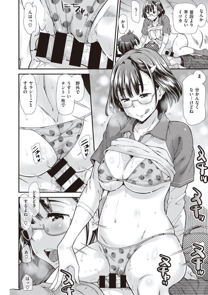 - >【エロ漫画】キャンプ場のテントの中で弟を手コキで逝かせるメガネっ娘ボブのお姉さん…セックスはまだの二人だけどキャンプに来ていた他のグループと集団セックスして姉弟もどさくさで初セックス