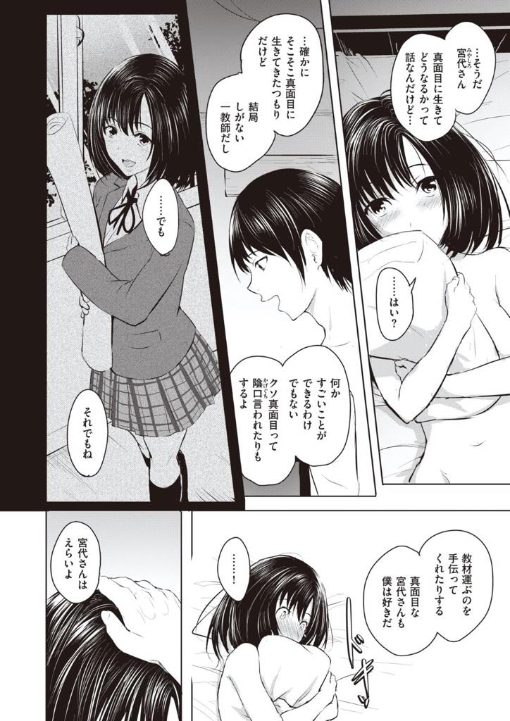 あの夜のことを二人だけの秘密にして、卒業式の日に宮代さんが先生に告って4月から付き合い始めるってことにしちゃえばいいんじゃね。現実でも生徒と結婚してる教師なんて結構いるし、在学中からバレない程度に付き合ってるケースも多々あるからね。
