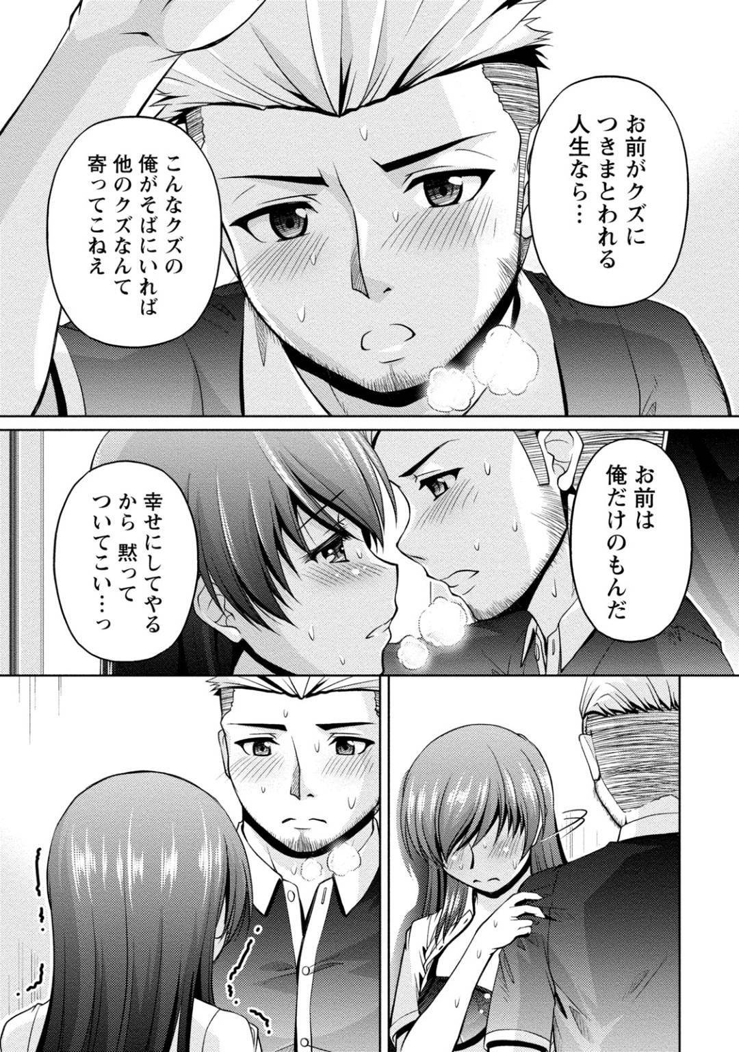 【エロ漫画】自分の身体をクズな男たちに利用されてきた美人妻は、夫と幸せになれないと思い別れようとするが、夫に愛を叫ばれながら立ちバックで生ハメされて中出しセックスで幸せイキ!