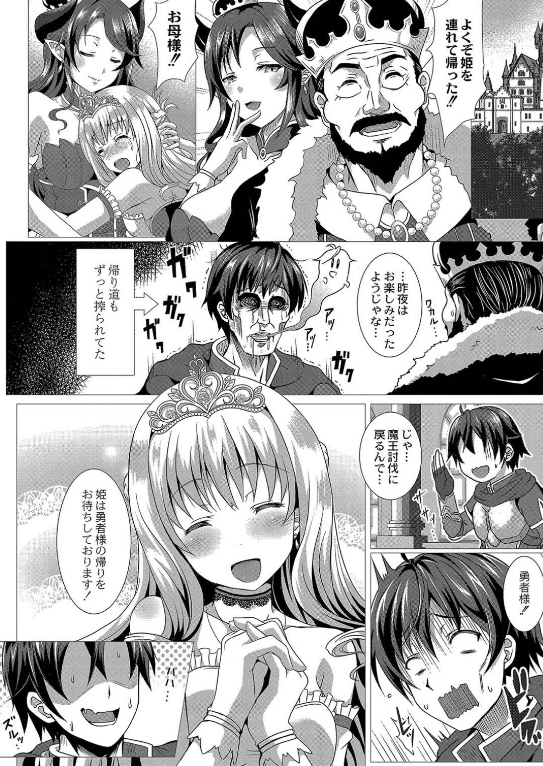 【エロ漫画】魔王の城から姫を救い出した勇者だが、城を出る前にサキュバス化した姫に逆レイプされ連続生ハメ中出しセックスで精液を搾取される!