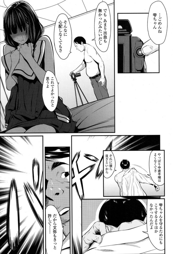 【エロ漫画】清楚な処女JKを息子をダシに挿入無しのハメ撮り撮影をお願いして約束破りのマジハメする彼氏の父親!